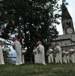 Il percorso che vi proponiamo, nel complesso, ha una lunghezza di circa 30 chilometri e un tempo di percorrenza, per un medio camminatore, di otto ore. È possibile interromperlo in sei punti e rientrare alla borgata Serre, in quei punti è possibile iniziare una parziale percorrenza. Il sentiero è interamente segnalato, cosi come i punti di ritorno. Detto percorso si snoda principalmente su antiche mulattiere e tocca, o sfiora, tutte le borgate di Elva. Dove segnalato sarà possibile effettuare il tracciato anche in mountain bike o a cavallo e durante la stagione invernale con le racchette da neve. Partiamo dunque per la nostra gita, dal capoluogo, borgata Serre quota 1637 metri slm. Di qui, passando davanti all’odierna foresteria “La Fernisola”, ci incamminiamo per la strada asfaltata e in 10 minuti raggiungiamo la borgata Goria – Mattalia a quota 1661 metri slm. Questa borgata è la più meridionale del gruppo abitato denominato Goria che conta, in tutto, cinque agglomerati abitativi. Mattalia è composta da nove case: nelle due più grandi, che sono sulla destra subito prima e dopo la fontana pubblica, si possono notare due colonne in pietra, una rotonda e una quadrata, a sostegno del tetto. L’abitato è disteso su ampio pendio assolato in lieve declivio. Di qui, passando accanto alla fontana pubblica, seguendo la vecchia strada in 5 minuti arriviamo ad un’altra borgata del cantone di Goria: Isaia quota 1703 metri slm. Il nome di questa frazione, come quello di Mattalia, è di origine ebraica. Questa tranne alcune case, di cui una prospiciente alla strada, è in forte stato di degrado. Di qui proseguiamo verso la pineta sulla strada che per centinaia di anni fu la più importante via di comunicazione degli elvesi con gli altri paesi della Valle Maira, specialmente con stroppo. Questa parte del percosso passa interamente in un grande bosco di larici. Raggiungiamo da prima, in 15 minuti, una fontana detta “dell’Arsisa” a quota 1778 metri slm, qui possiamo riempire le borracce con acqua fresca e purissima per proseguire in direzione della chiesa di S. Giovanni a quota 1872 metri slm, che raggiungiamo in 15 minuti. L’impressione che si ha, arrivati in questo luogo, è indescrivibile. Se crediamo in Dio, sicuramente si è fermato qui e ha voluto manifestare la sua grandezza. L’occhio può spaziare tutt’intorno, con da un lato la conca di Elva e le sue montagne, dall’altra la valle e in basso la pianura. Al centro della radura c’è una piccola chiesa rotonda, dedicata al culto di S. Giovanni, dove viene celebrata la messa l’ultima domenica di giugno. Continuiamo il nostro cammino e in 10 minuti raggiungiamo la provinciale, verso la costa Cavallina a quota 2000 metri, che sale da Stroppo e percorrendola in direzione di Elva per circa 5 minuti, superato il bivio per il Colle di Sampeyre, incontriamo una strada sterrata sulla destra. In questo punto possiamo interrompere il percorso, facendo ritorno ad Elva borgata Serre seguendo la provinciale. Oppure proseguiamo sul nostro sentiero, che si presenta pianeggiante e molto panoramico, e raggiungiamo la località Chiotti a quota 1864 metri in 15 minuti. Questa località è costituita da grandi prati in lieve declivio, che sovrastano le tre borgate più alte del cantone di Goria: Superiore, di Mezzo e Ugo. Di qui nuovamente i nostri occhi possono spaziare su tutta la conca elvese e la dolcezza del paesaggio pervade l’osservatore con un senso di pace. Da questa località raggiungiamo, in 20 minuti, con un percorso prima in discesa fino ad una fontana e poi in salita, la base delle rocce di “Ripalta” a quota 1900 metri, di qui in avanti il paesaggio si fa più aspro e scosceso e proseguiamo su un sentiero che taglia a mezza costa un ripido prato che sovrasta la borgata Morelli. Questa deve il suo nome probabilmente ad un notaio di Acceglio, che esercita la propria attività ad Elva nel 1700 qui stabilendosi temporaneamente. Il sentiero prosegue permettendoci di raggiungere in 35 minuti la borgata Martini a quota 1726 metri slm. Il nome di questa borgata è certamente dovuto al culto di S. Martino, è di grandi dimensioni ed è collocata in posizione molto soleggiata con tutto intorno un’ampia distesa di campi e prati. Su un comignolo si può ancora notare il disegno di una meridiana circondata da una scritta parzialmente leggibile. Da questa borgata possiamo interrompere il percorso, facendo ritorno a Serre. Altrimenti seguendo la strada comunale, svoltando a destra, in 10 minuti raggiungiamo il bivio che, sempre a destra, incontra una strada sterrata di recente costruzione e a sinistra si prosegue per le borgate: Baudini, Frangette e Meira. La prima di queste deve il suo nome al casato dei Baudino, mentre le altre due con il loro stesso indicano che da principio erano costituite da grange per il soggiorno temporaneo dei pastori. Tornando al nostro percorso, imbocchiamo la strada sterrata prima citata al bivio a destra, e in 1,10 minuti raggiungiamo la località Grange a quota 1830 metri. Il percorso prima in salita, poi diventa pianeggiante e taglia a metà un enorme dirupo detto “Barsaie”, qui non è raro incontrare delle pernici che trovano in questo luogo, il loro abitat naturale. Proseguendo si incontra un immenso prato in ripido declivio denominato “Chiampines”. Avanti incontriamo la prima delle tre borgate di questo luogo, Grange Viani poi Grange Laurenti e infine Grange Garneri. Il nome indica che anche qui il primo insediamento fu dovuto a pastori che costruirono delle grange per i pascoli estivi del bestiame. Altra nota di rilievo è costituita dalla campana della cappella di borgata Laurenti, si di essa è incisa una scritta, datata 1664 che ricorda l’insediamento di uomini, provenienti dal vicino Delfinato di religione Calvinista, eretici dunque che qui si rifugiarono dai loro luoghi di origine cercando scampo alla persecuzione. La Cappella è dedicata al culto dei santi Claudio e Chiaffr